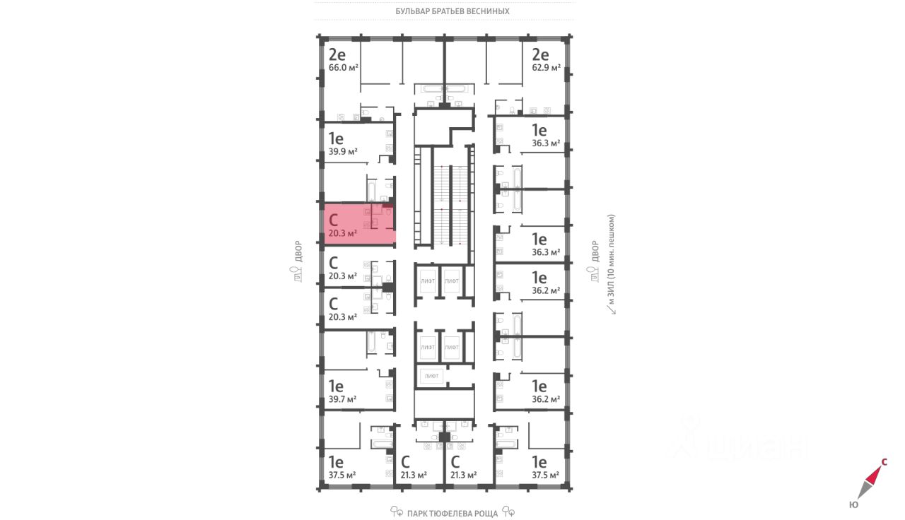 Продаётся квартира-студия в доме ЗИЛАРТ СПАРК общей площадью 20.3 кв. метров на 38 этаже.