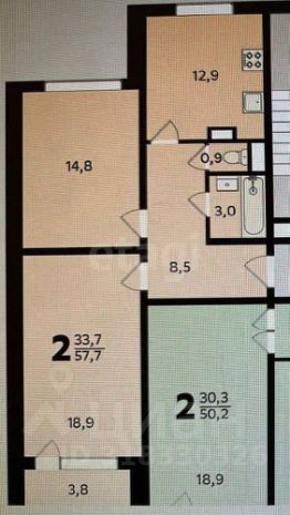 Очень уютная и светлая квартира, с великолепной планировкой распашонка 57.3 м.кв.