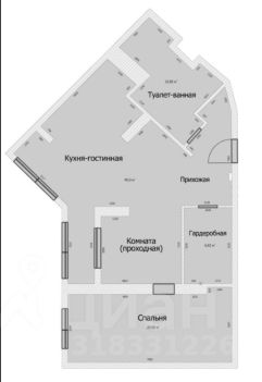 Внутренняя площадь квартиры объединена с пространством лоджии (общая площадь - 86 кв. м.).