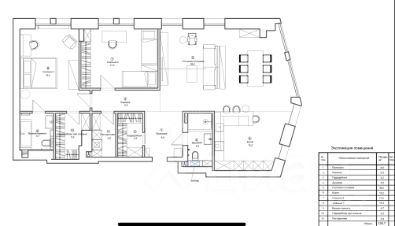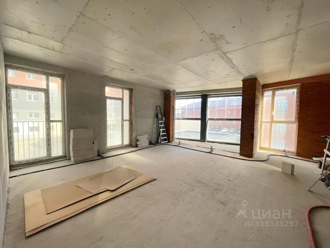 В квартире предусмотрены три мокрые точки, что позволяет гибко организовать санузлы и кухонную зону. Возведены стены. Лоджия объединена с жилым помещением, благодаря чему общая фактическая площадь квартиры увеличена до 126,7 м². В одной из спален предусмотрен французский балкон.