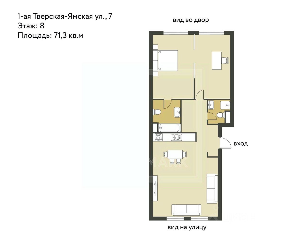 ID 63701. Эксклюзивно в компании INTERMARK. Идеальная квартира для семейной пары в фасадном доме на 1-й Тверской-Ямской улице, в центре культурно-досуговой жизни Москвы.