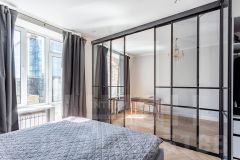 Полностью заменена проводка и выведена система кондиционирования. Установлены тройные шумоизоляционные стеклопакеты, которые обеспечивают идеальную тишину. На полу изящная паркетная доска-"елочка". Окна выходят на 2 стороны: гостиная смотрит на улицу, а спальня - в небольшой дворик. Днем можно наслаждаться видами на центр города, а ночью спокойно спать, не боясь, что ваш сон будет тревожить лишний шум. Вся перепланировка узаконена.
