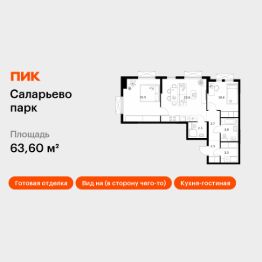 Продаётся 2-комн. квартира площадью 63,6 кв.м на 12 этаже 17 этажного дома (Корпус 20, Секция 1) проекта ПИК Саларьево парк. Светлый просторный подъезд на уровне земли, функциональная планировка, большие окна, c отделкой.