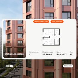 Продаётся 1-комн. квартира площадью 36,4 кв.м на 16 этаже 22 этажного дома (Корпус 57.3, Секция 3) проекта ПИК Саларьево парк. Светлый просторный подъезд на уровне земли, функциональная планировка, большие окна, предчистовая отделка.