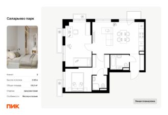 Продаётся 2-комн. квартира площадью 58,5 кв.м на 7 этаже 15 этажного дома (Корпус 57.2, Секция 2) проекта ПИК Саларьево парк. Светлый просторный подъезд на уровне земли, функциональная планировка, большие окна, предчистовая отделка.
