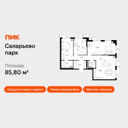 Продаётся 3-комн. квартира площадью 85,8 кв.м на 6 этаже 16 этажного дома (Корпус 57.1, Секция 1) проекта ПИК Саларьево парк. Светлый просторный подъезд на уровне земли, функциональная планировка, большие окна, предчистовая отделка.