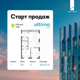 Старт продаж! Продаётся 2-комнатная квартира от застройщика ГК "КОРТРОС" в жилом комплексе бизнес-класса ULTIMAcity. Квартира расположена на 20 этаже 45 этажного корпуса 1. Общая площадь 55,47 м². Без отделки.
