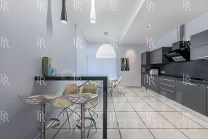просторная гостиная объединенная с кухней.
