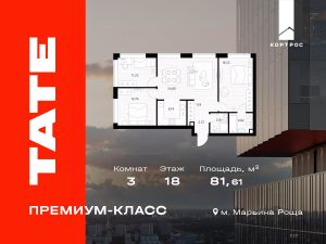 Продаётся 3-комнатная квартира от застройщика в ЖК премиум-класса TATE на 18 этаже. Общая площадь 91,61 м². Отделка предчистовая (white box). Башня В.