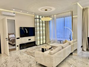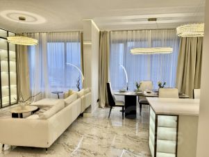 Продается просторная 4-комнатная квартира с дизайнерским ремонтом в престижном районе Москвы. Общая площадь составляет 120 кв. м, жилая площадь — 65 кв. м, а кухня — впечатляющие 40 кв. м. Квартира расположена на 32 этаже 53-этажного монолитного дома, построенного в 2023 году. Высокие потолки в 3 метра и окна, выходящие на улицу и во двор, создают ощущение простора и света.