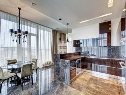 Видовой пентхаус с большой открытой террасой. Выполнена отделка в современном стиле. Безупречный дизайн и мебель выполнены на заказ.