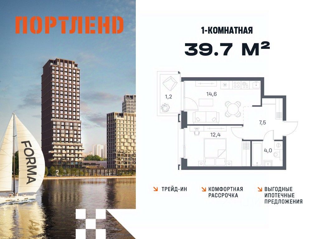 Продаётся 1-к. квартира, 12 этаж в жилом комплексе бизнес-класса ПОРТЛЕНД от девелопера FORMA. ЖК расположен на берегу Москвы-реки в северной части района Печатники в акватории Южного речного порта.