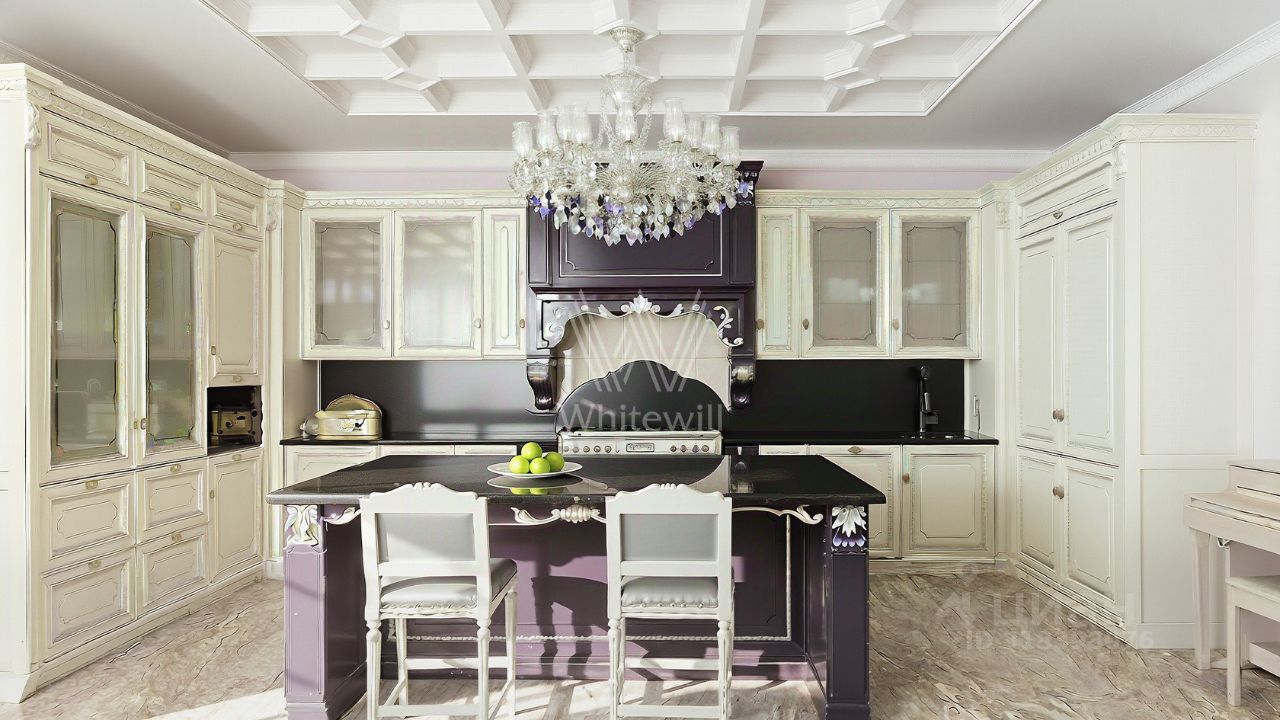 Многоуровневые потолки украшают дизайнерские люстры, стены — декоративные молдинги и графика.