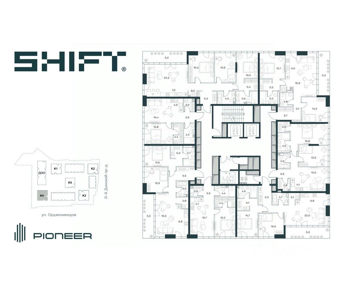 SHIFT - новый премиальный проект от девелопера PIONEER в Донском районе, в 300 м от Нескучного сада.