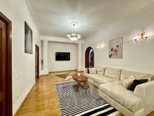 Предлагаем 4-х комнатную квартиру в сталинском доме возле метро Аэропорт. Общая площадь квартиры составляет 130,4 кв.м., высота потолков 3,2 метра, сделан очень качественный ремонт из натуральных материалов, квартира полностью укомплектована мебелью и техникой, которые входят в стоимость.