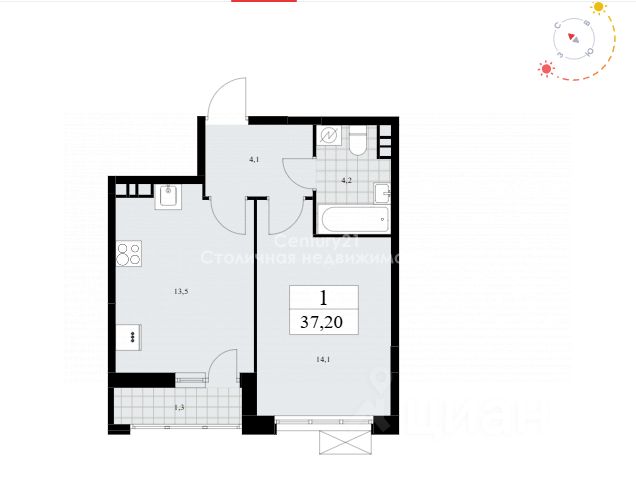 Арт. 106780666 Продается квартира в пред чистовой отделке 37,2 м2 рядом с метро!!!