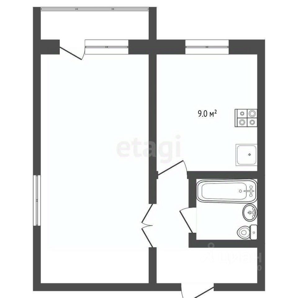 - Общая площадь: 35,1 м²