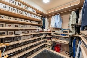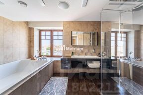 санузел в прихожей. На 2-м уровне расположены мастер-спальня со своими ванной и гардеробной комнатами, две спальни с общей ванной комнатой. На 3-м уровне зона отдыха со своей кухней, выход на трехстороннюю террасу с зоной барбекю, с которой открываются роскошные виды на исторический центр Москвы.