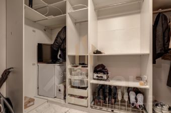 Планировкой предусмотрено: кухня-гостиная с эркерной зоной и выходом на балкон, три спальные комнаты, ванная комната с сауной, холл с вместительной гардеробной, гостевой санузел, постирочная, прихожая. В каждой комнате предусмотрены места для хранения. Квартира оборудована кондиционерами.