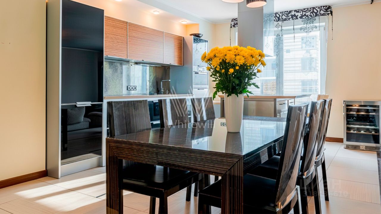 Просторная и светлая квартира с тремя спальнями площадью 156 м² в комплексе "Воробьёвы горы" на четырнадцатом этаже. Выполнена отделка в светлых лаконичных оттенках с использованием натуральных материалов — паркет, керамогранит премиум-класса, камень, дерево. Квартира оборудована центральной системой кондиционирования, а для повышения комфорта установлены "теплые полы".