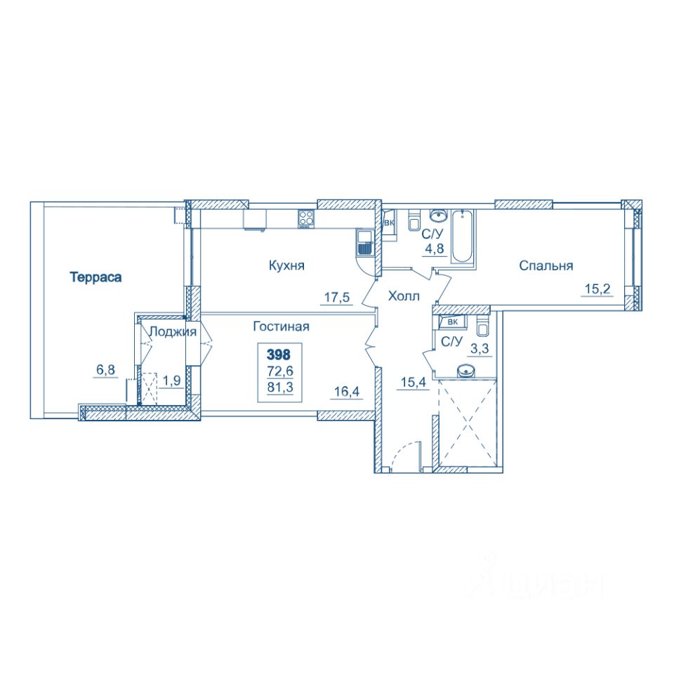 Продается 2-комнатная квартира в ЖК "Династия" на 2 этаже. Общая площадь квартиры составляет 81,4 кв.м. Квартира без отделки.