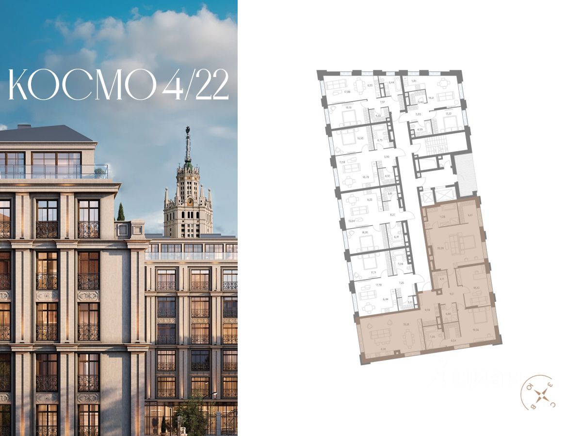 В клубном доме класса De Luxe "Космо 4/22", расположенном на острове Балчуг, напрямую от девелопера ГК "Галс-Девелопмент" представлена 3-комнатная квартира на 2 этаже общей площадью 174.70 м².