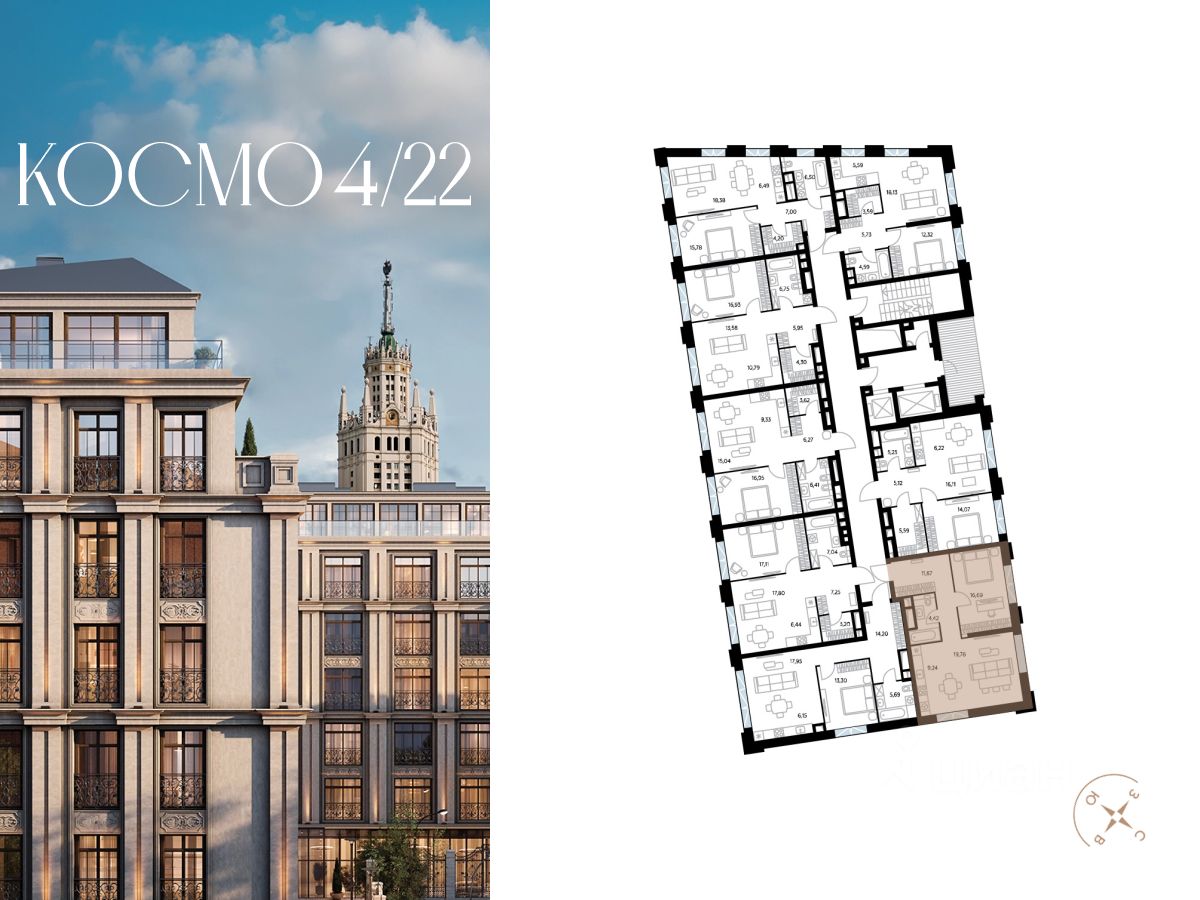 В клубном доме класса De Luxe "Космо 4/22", расположенном на острове Балчуг, напрямую от девелопера ГК "Галс-Девелопмент" представлена 1-комнатная квартира на 5 этаже общей площадью 62.10 м².