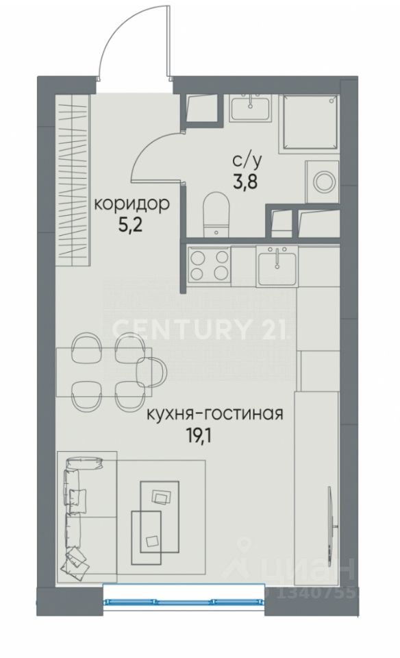 Продается квартира-студия 28.50 кв. м. в ЖК "ОСТРОВ" на 12-м этаже с видом во двор.