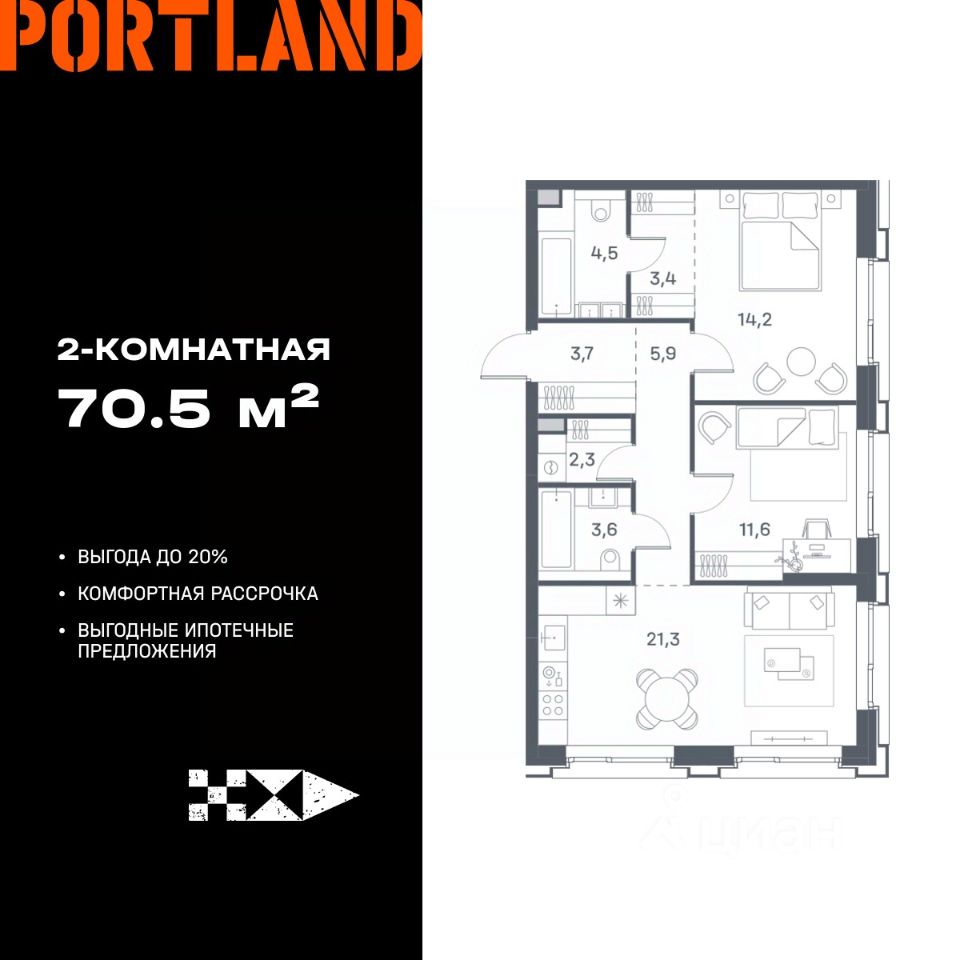 Продаётся 2-к. квартира, 18 этаж в жилом комплексе бизнес-класса Portland от девелопера FORMA. ЖК расположен на берегу Москвы-реки в северной части района Печатники в акватории Южного речного порта.