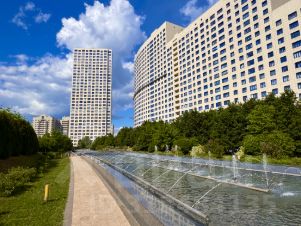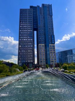 Своя отгороженная территория с детскими площадками, фонтанами, зоной барбекю, беседками и прогулочными зонами.