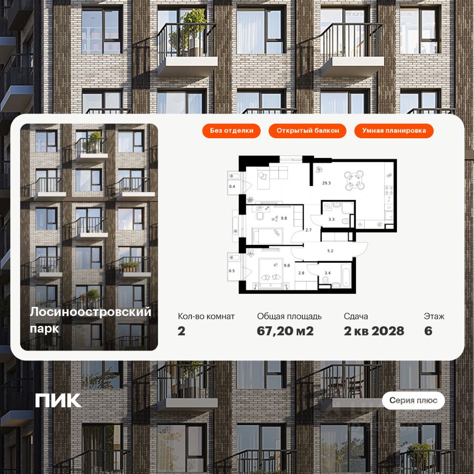 Продаётся 2-комн. квартира площадью 67,2 кв.м на 6 этаже 14 этажного дома (Корпус 2.3, Секция 1) проекта ПИК Лосиноостровский парк. Светлый просторный подъезд на уровне земли, функциональная планировка, большие окна, без отделки.