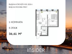 Просторный лот с 1 спальней в Доме на набережной INSIDER. Сервисные лоты с системой "умный дом" на первой линии Москвы-реки.
