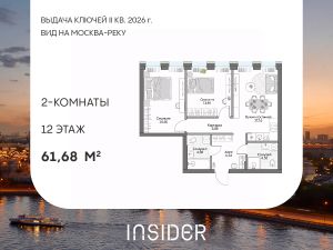 Просторный двухкомнатный лот в Доме на набережной INSIDER. Сервисные лоты с системой "умный дом" на первой линии Москвы-реки.