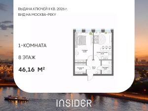 Просторный лот с 1 спальней в Доме на набережной INSIDER. Сервисные лоты с системой "умный дом" на первой линии Москвы-реки.