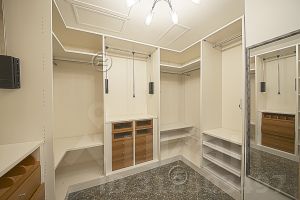 Хозяйская спальня с большой гардеробной комнатой (с сейфом) и с ванной комнатой (ванна с гидромассажем и душевая кабина).