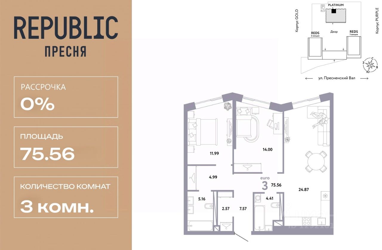 Новая квартира в ЖК "Republic" напрямую от федерального застройщика "Страна Девелопмент".