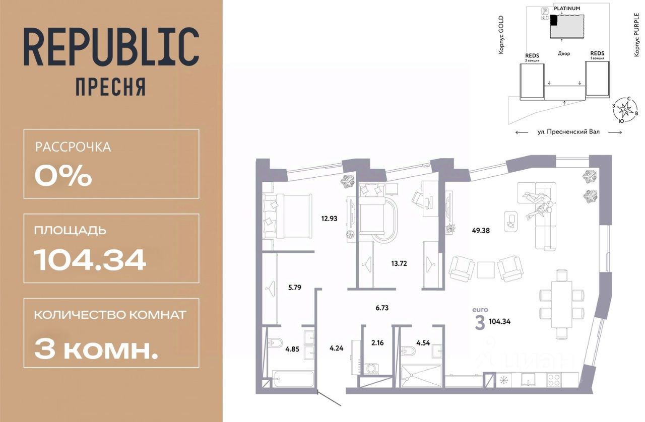 Новая квартира в ЖК "Republic" напрямую от федерального застройщика "Страна Девелопмент".