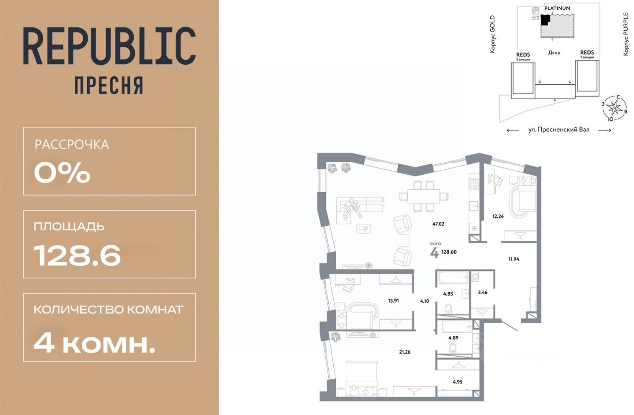 Продается 4комнатная квартира на 28 этаже от застройщика Страна Девелопмент. Площадь квартиры 128,6 кв. м.