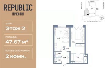 Продается 2комнатная квартира на 3 этаже от застройщика Страна Девелопмент. Площадь квартиры 47,67 кв. м. Стоимость указана без учета акций.