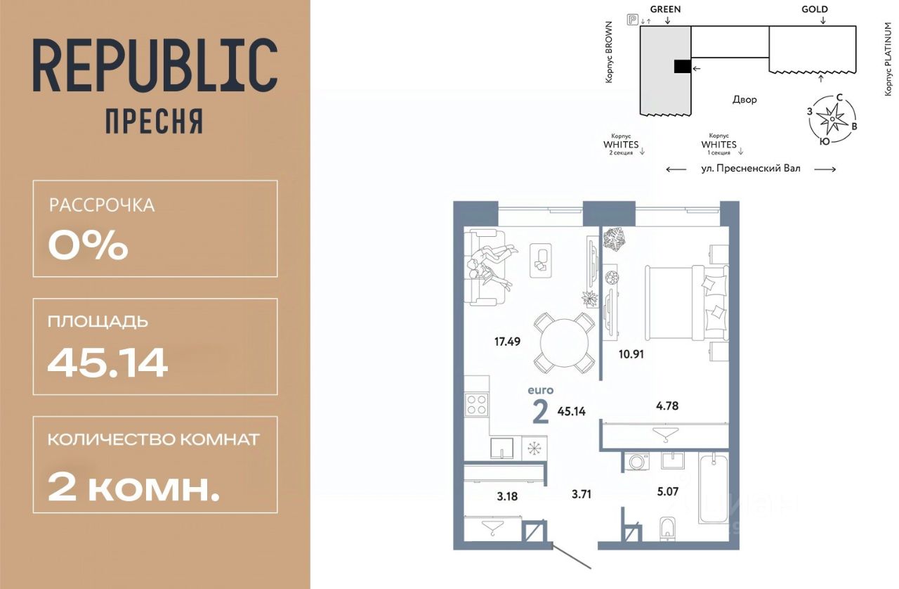 Новая квартира в ЖК "Republic" напрямую от федерального застройщика "Страна Девелопмент".