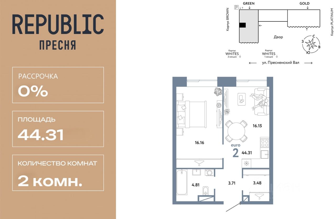 Новая квартира в ЖК "Republic" напрямую от федерального застройщика "Страна Девелопмент".