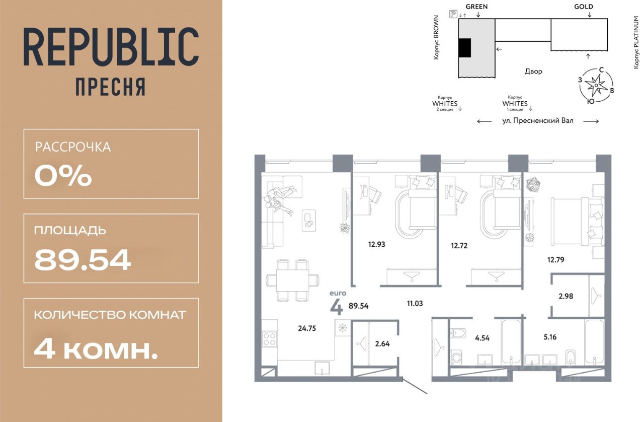 Продается 4комнатная квартира на 29 этаже от застройщика Страна Девелопмент. Площадь квартиры 89,54 кв. м.