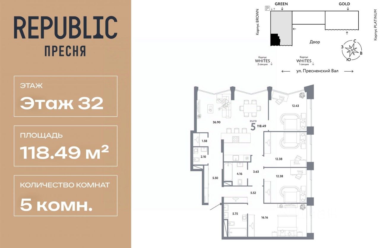 Продается 5комнатная квартира на 32 этаже от застройщика Страна Девелопмент. Площадь квартиры 118,49 кв. м. Стоимость указана без учета акций.