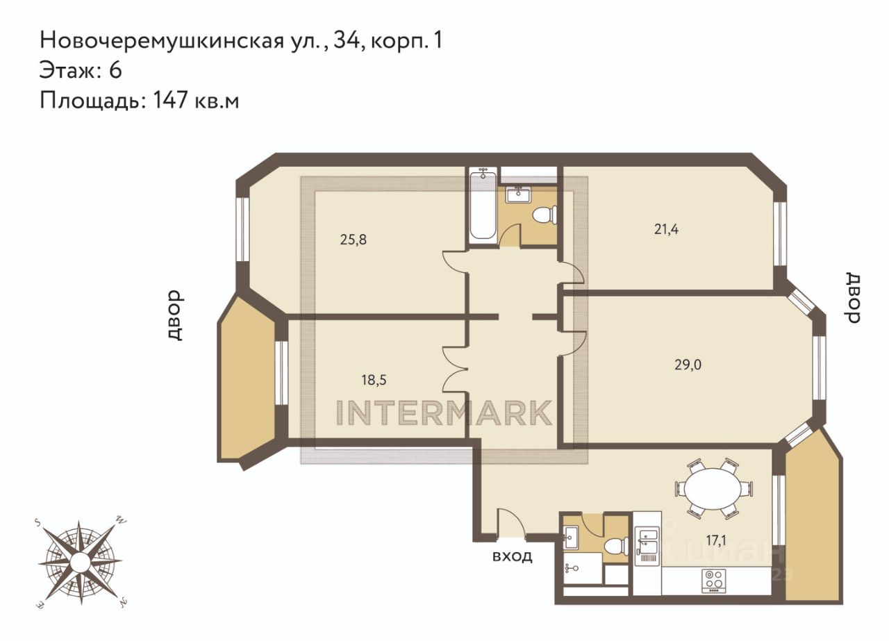 ID 64850: Эксклюзивно в компании INTERMARK. Предлагается просторная 4-комнатная квартира, обладающая превосходным потенциалом. Можно сразу въехать, можно сделать косметический ремонт или воплотить любой дизайнерский проект. Общая площадь 147 кв.м. Расположена на высоком и светлом 6-ом этаже солидного монолитно-кирпичного дома в лучшем районе Москвы. Дом 2005 года, железобетонные перекрытия, подземный гараж. Квартира прекрасно спланирована: просторный холл, гостиная, три спальни, два балкона, кухня с гарнитуром и техникой, два полных сан.узла: один с ванной, второй с душевой кабиной. Окна квартиры выходят на две стороны, открытые приятные виды. Очень тихо.