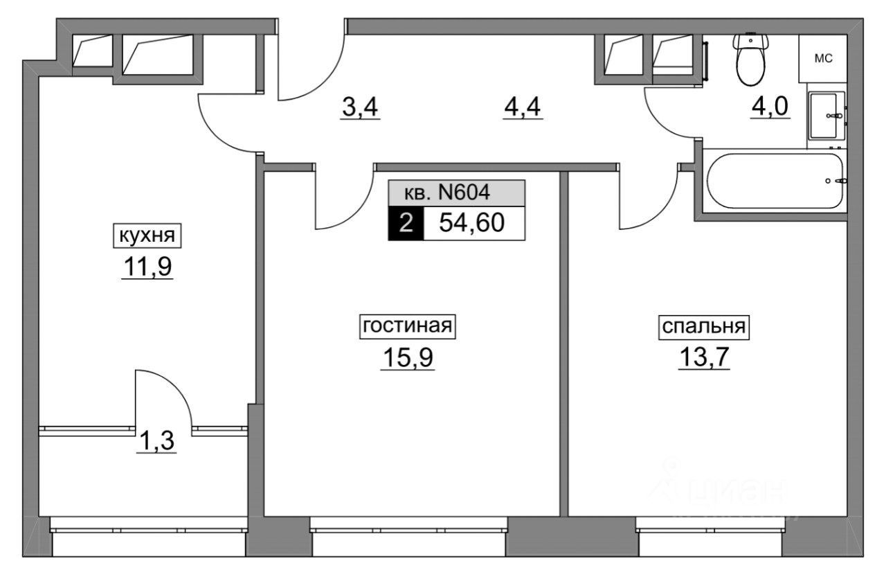 Предлагается к продаже двухкомнатная квартира площадью 54 кв. м. в новом современном монолитном жилом комплексе Бизнес класса Румянецево Парк, расположенном на улице Родниковая.
