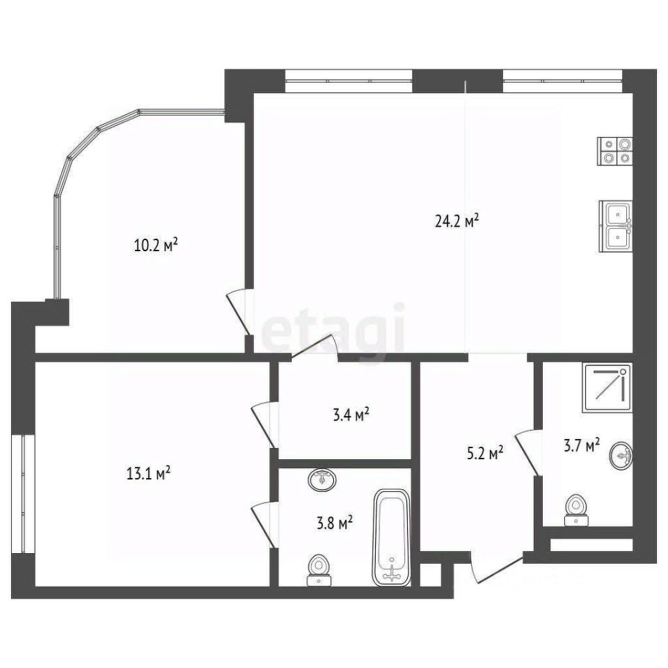 Удобная планировка: две отдельные спальни и просторная кухня-гостиная