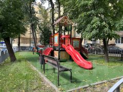 Теплый, добротный дом и уютный двор с детской площадкой. Парковка есть - только для жителей дома (шлагбаумы).