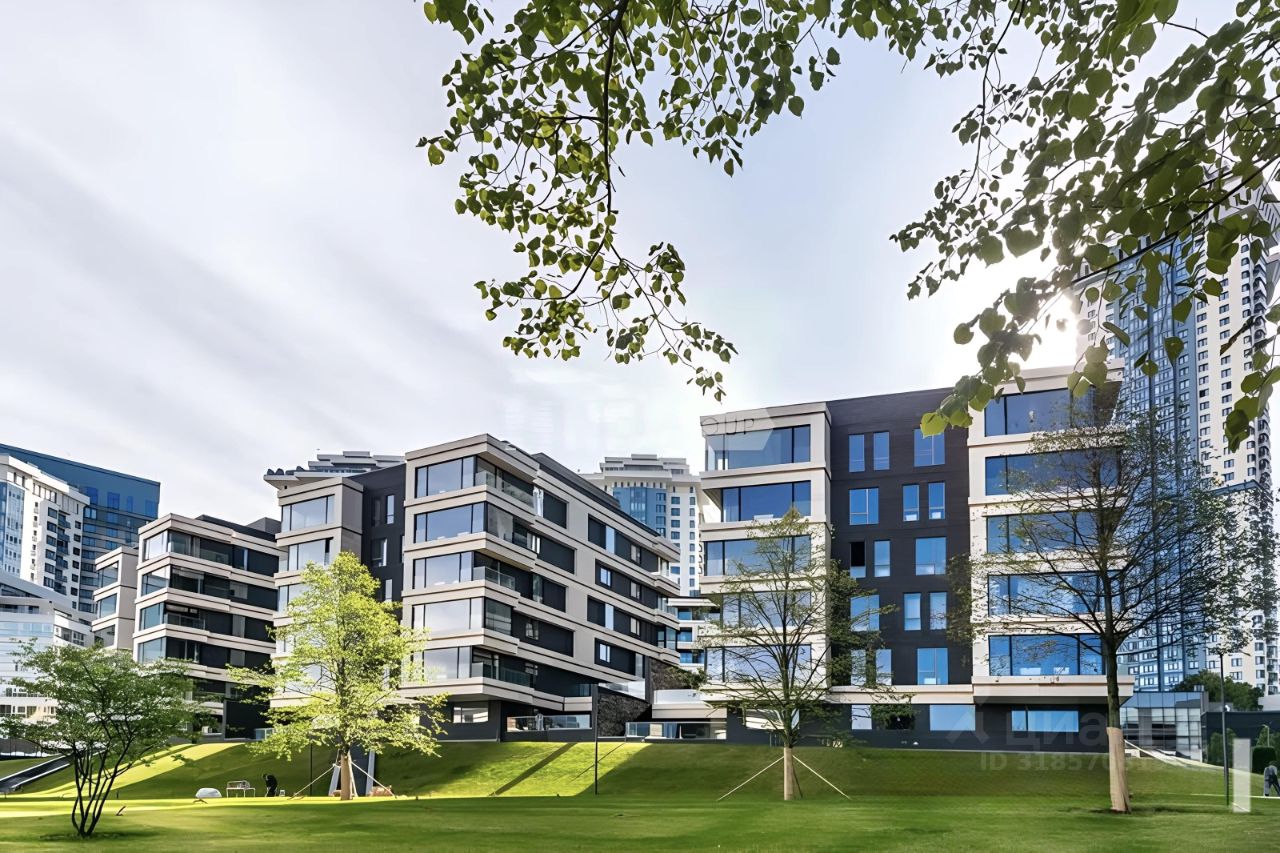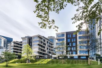 Низкая этажность (4-8 этажей) органично вписывается в окружающий ландшафт, создавая атмосферу уютного загородного поселка. Панорамные окна квартиры открывают великолепный вид на зеленый парк и ближайшую прибрежную территорию.