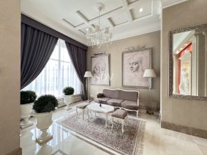 В квартире сделан современный дизайнерский ремонт с использованием качественных материалов. Планировка включает два совмещенных санузла и один гостевой санузел, балкон. Встроенная мебель и техника остаются новым владельцам, что позволит вам сразу переехать и наслаждаться жизнью. Все комнаты оформлены в едином стиле, создавая гармоничную атмосферу.