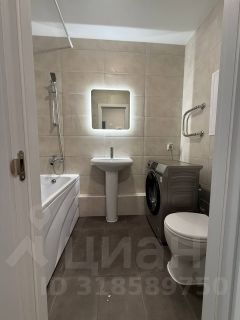 Ванная комната — стиральная машина, зеркало с подсветкой.